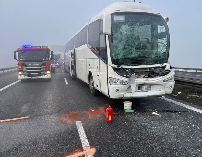 Biorąc pod uwagę liczbę uczestniczących pojazdów, skutki mogły być znacznie poważniejsze. Ranny został 55-letni kierowca autokaru pochodzący z województwa małopolskiego. Mężczyzna doznał obrażeń nóg i został przewieziony do szpitala. Żaden z pasażerów autobusu nie odniósł poważniejszych obrażeń. Służby medyczne udzieliły pomocy na miejscu.